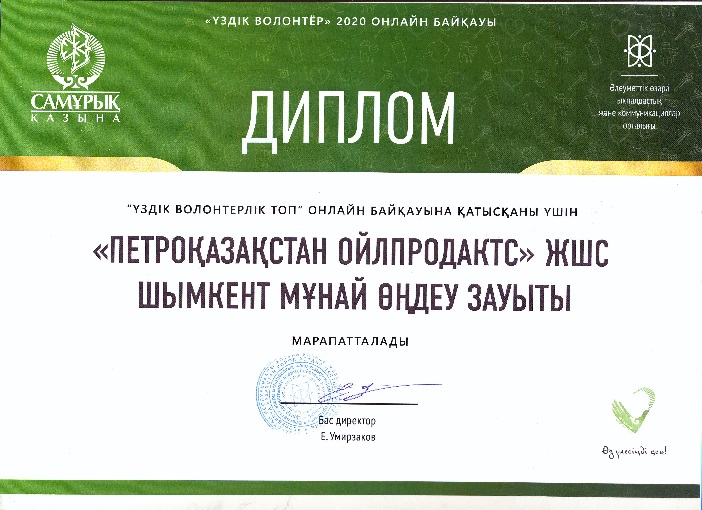 Благодарственными письмами наградили Совет молодых специалистов-волонтеров ТОО «ПКОП».